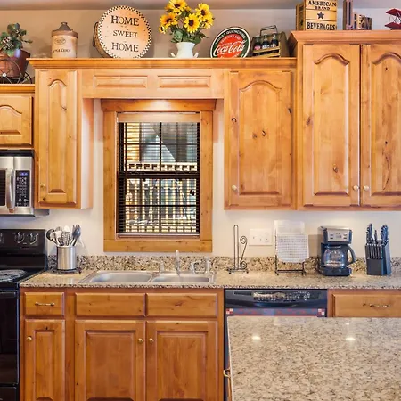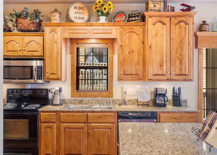 The kitchen amenities at the Branson accommodation feature a fridge, an oven, and kitchenware, provided in a dining area. Guests have access to restaurant Rock Island Grill, situated in the vicinity of 2Br Village At Indian Point 1605 Near Sdc - Free Tickets Daily Up To $500 villa. The accommodation is also a 40-minute drive from Branson, MO.
